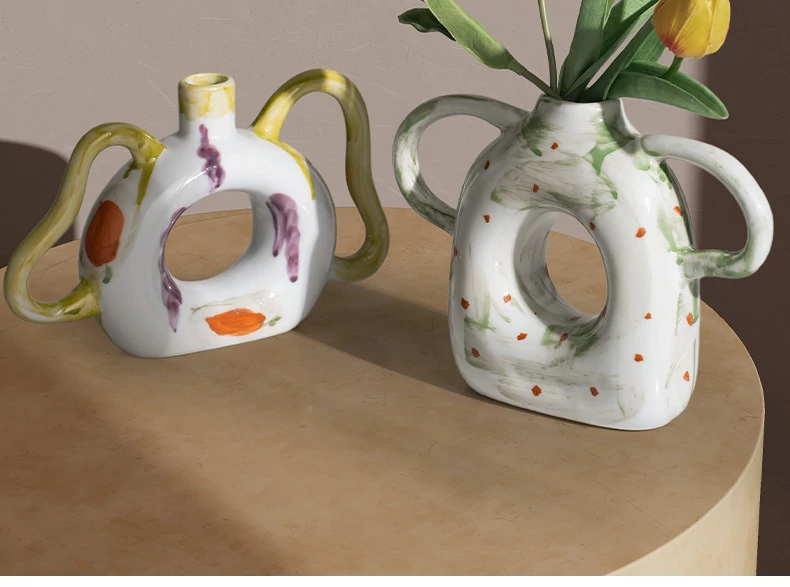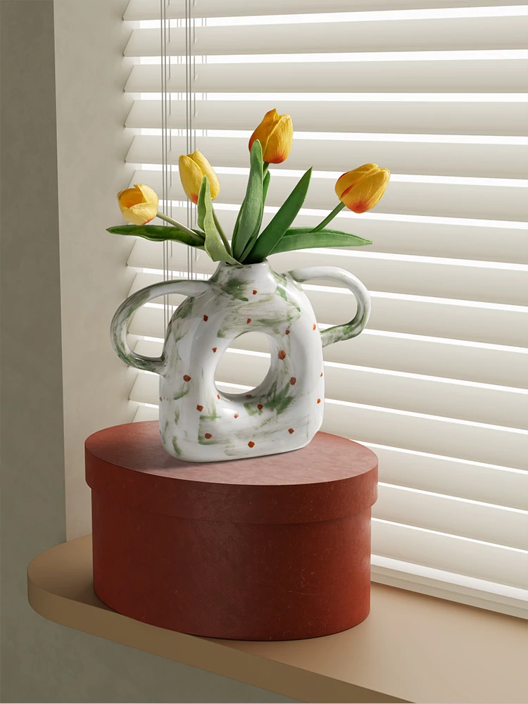 クリーム風の花瓶装飾品 - リビングや玄関、テーブルを華やかに演出する陶器製の高級感あふれるインスタ映えするフラワーベース。おしゃれなインテリアにぴったり!